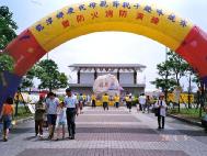 开幕后接下来的节目就是各项竞赛,主办单位青工会鼓励大家多多参与,也邀请法轮功学员参加,还说有奖品可以拿,学员则加以婉谢。因为学员一心想洪法,便开始发起了简介,也在摊位附近作功法展示,来往的人很多,民众都很愿意接简介了解真相。也有不少民众驻足在大型看板前看洪法图片,有一个人甚至在那看了一个多小时看完了所有的展板后才离去。等到后来我们再遇见他时,他说他向他的朋友介绍了法轮功还给了他简介,我们一听连忙又给了他一份,他兴高采烈地走了。看来这个人未得法就已经开始洪法了。