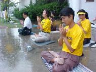 这里,白天有着接近华氏一百度的高温和骄阳,夜晚有毒蚁和蚊虫的骚扰,有时还有暴雨的袭击,但大法弟子们正念坚定,岿然不动,任凭惊雷在头顶翻滚,在暴雨中持续立掌一个多小时。这时他们只有最纯净的心态和最坚定的正念,而在另一空间,无数天神天将助阵,无比壮观,邪恶已无残喘之机。