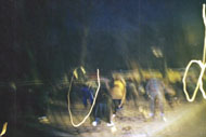 | 南京市,学员在寻找炼功点的路上(1999年3月1日) | 湖北汉口,徐洲江边炼功点(1999年3月10日早6点5分) |