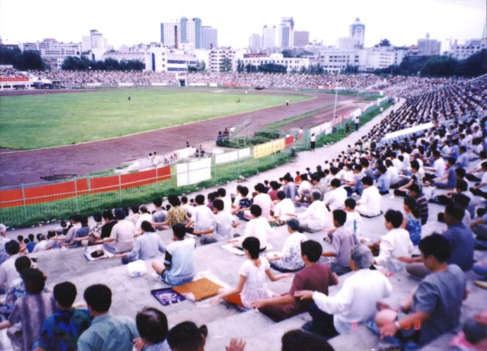 | 黑龙江省哈尔滨市八区,法会期间集体炼功(1998年8月8日) | |