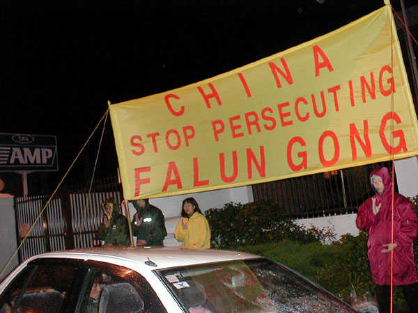 | 在奥克兰中国领事馆前雨中发正念 | |