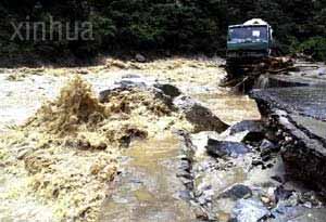 被洪水冲毁的210国道