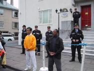 众多冰岛群众在中国驻冰岛使馆前学炼法轮功