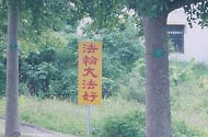 最近在台东县的市区、县道均可看到许多美丽的「法轮大法好」黄色旗帜,在著名的知本游乐区入口,醒目的「法轮大法好」看板吸引了众多游人的目光。大法弟子出于善心,真诚的希望每一个路过的人能在心中认同「法轮大法好」,这发自真心的一念就能为他定下美好的未来。