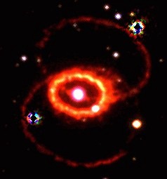 照片中的“小宝贝”是超新星1987A的残余物,超新星1987A为1987年2月发现的恒星爆炸。这些图片证实了一般的理论预计,同时也提供了一些意想不到的地方:一个死星喷出的宇宙“烟环”被一个速度高达每小时数以百万英里计的巨大的震波所湮没。