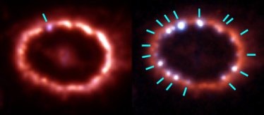 “热点一个接一个地出现,就象一个婴儿掉下第一颗乳牙一样”,哥伦比亚大学的艾林.克劳兹(Arlin Crotts)博士描述说,“令人惊奇的是,这些热点并没有按正常的或可预测的规律出现,他们仍然没有扩散成明显的环形”。