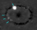 围绕超新星1987A的有三个耀眼的星际气体星云,这些星云是行将死亡的恒星在爆炸前2万年时排出的(见图1)。观测结果显示,这些星云呈平面环形,因为与我们的视角呈45度倾斜的缘故,看起来呈椭圆形。这些星云由于恒星爆炸时产生的大量紫外线而显得非常明亮,随后其亮度逐渐变暗。