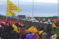 15日夜,冰岛首都警察拒绝和平展示法轮功横幅的申请之后,大法弟子们成功取得了在江XX必经之路的机场附近展示横幅的许可。