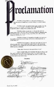 2002年5月28日,新泽西州大洋门市(Borough of Ocean Gate)市长和全体市议员共同签发褒奖令,宣布2002年6月10日至16日为大洋门市“法轮大法周”。