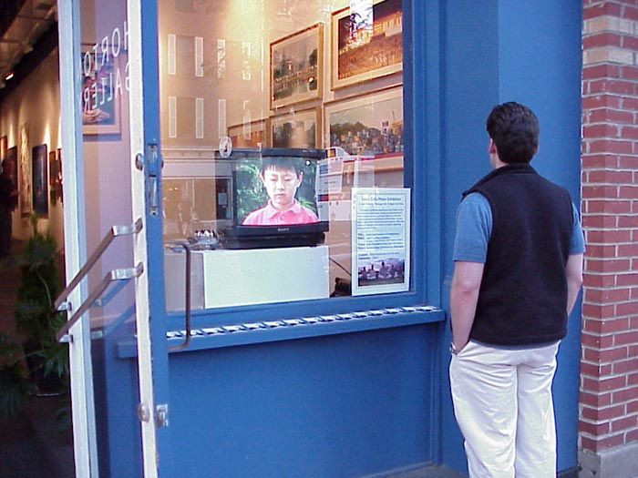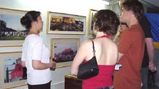 果然刚过六点钟,街上的人就陆陆续续地多起来了。有学员想了个好主意:在门口连续播放澳大利亚学员拍摄的功法演示录像带,旁边是图片展的彩色介绍海报。结果很多行人在画廊前驻足观看学员优美的炼功动作,有人甚至问怎样才能得到这盘带子。一直到晚上十点半,来参观图片展的人仍络绎不绝。几个学员忙着向观众介绍这图片,并回答他们的问题。据画廊老板说,当晚有1800人参观了画廊。很多人都对如此优美的功法遭到残酷的迫害感到遗憾、甚至愤慨。有人主动建议我们提供一本签名册,以便留下联络方式得到更多的消息;有人主动询问如何帮助停止这场惨无人道的迫害;很多人表示想学炼法轮功。下面是展览期间的几个小花絮: