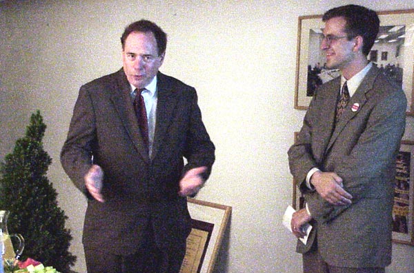 特邀来宾代表纷纷发表了演说。宾西法尼亚洲众议员Mark Cohen先生说:“众议院最近已通过决议支持法轮大法。我支持你们应得到的修炼权利,我支持人权。很明显有很多人炼法轮功,中国政府不应该害怕人多。在美国,我们不害怕(人多)。我希望中国政府将允许自由炼功。他们为什么如此害怕炼功?似乎任何人为任何目的的任何聚会,都能让他们担心你会颠覆政府。无论如何,我很愿意支持你们修炼法轮大法的权利。你们可以到任何你们想去的地方聚会。我希望中国政府能尽快停止这场遭到美国政府组织激烈反对的暴虐的镇压。宾州是代表美国自由的第一州,我们将继续维护人权。”
