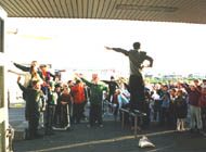| 自发赶来声援被扣留的大法弟子的冰岛民众,在弟子的带领下,学起功来,秩序井然,警察如释重负,非常信任我们大法弟子。 | |