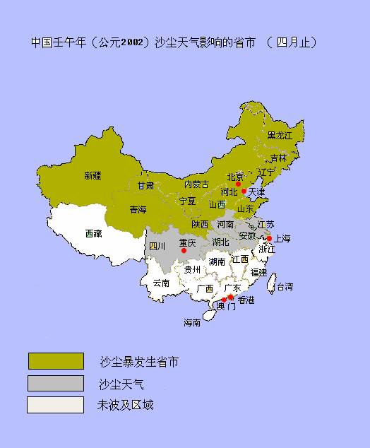 表3:2002年出现的沙尘天气(至2002年5月13日)