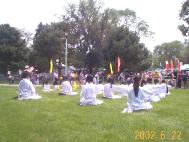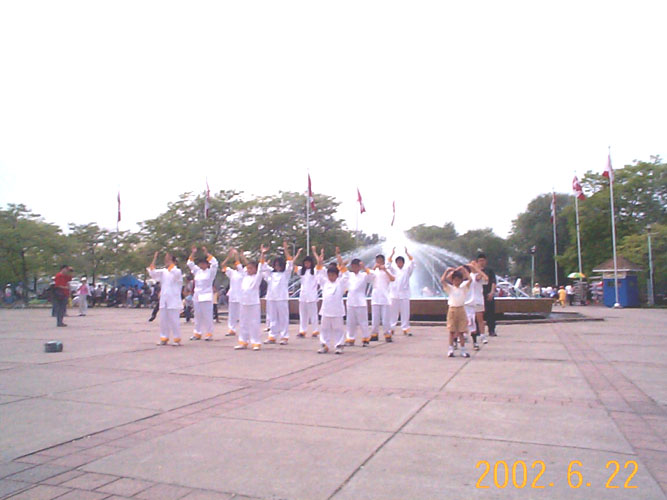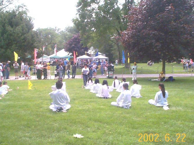 【明慧网2002年6月24日】六月二十二、二十三两天是多伦多一年一度的国际龙舟节,每年到了这两天,在多伦多湖心公园都会聚集十几万的游客,而每年多伦多的学员都会在人如潮涌的渡口向游客演示功法,发送真象资料。与往年不同的是,今年小弟子们以一个整体的姿态参与了这次活动,发挥了正法小弟子的作用。