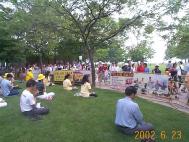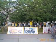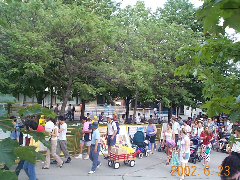 【明慧网2002年6月25日】六月二十三日,是多伦多国际龙舟赛的第二天,前去观看比赛和发奖活动的人真可谓是人山人海,和昨天一样,一大早就有很多学员来到码头,这是所有到多伦多湖心岛的人的必经之地,同时带去了很多真相资料。人群中走不远就能看到身穿黄色T恤衫的同修,他们一个个面带微笑,顶着正午的阳光,带着一颗真诚的心,将一份份资料送给游客。