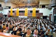 虽然没有中场的休息时间,但是所有大法弟子都不想错过任何一位学员的字字句句,宁可不去洗手间也要聚精会神地聆听,从中找出自己的差距,努力提升,精进不停!另外,现场几乎还有一半都是刚得法的新学员,这些新学员也是从头坐到尾,一边听一边流泪,他们虽然才刚进门,但已为主佛的慈悲与大法的威德所深深感动,并省思自己如何在得法那么晚的情况下还能迎头赶上,勇猛精进。