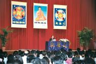 中午十二点多,在剑潭举办心得交流会的正厅与副厅已经座无虚席,所有老学员都主动先往副厅坐,将正厅位置留给许多新学员,大家不争不挤,不分彼此与你我,主动分担许多事务,真切体现出大法弟子的为别人着想的风范。
