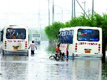 大雨中最着急的要数中考学生们了。暴雨致使路面积水,把乘车赶赴考场的学生们堵在了马路上。为了不耽误时间,有不少学生不得不下车向考场的方向狂奔。