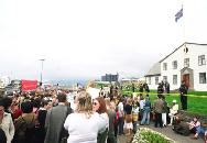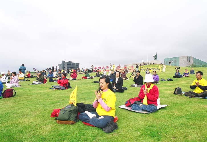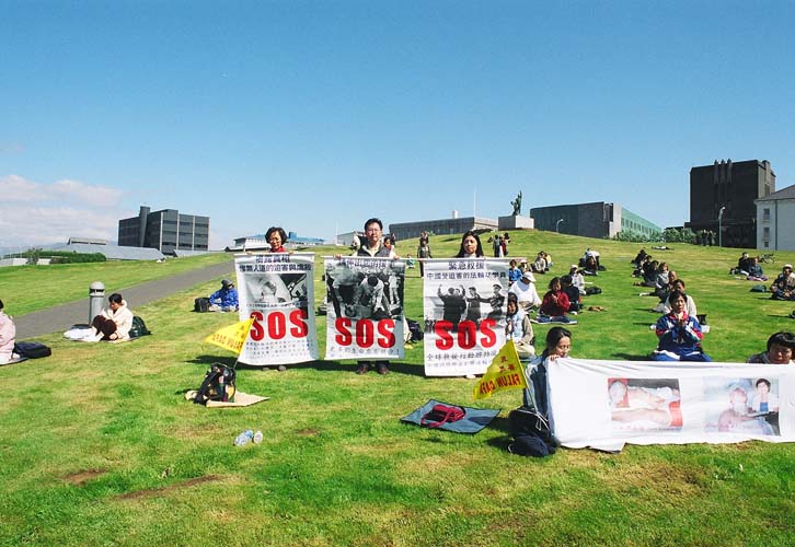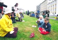 在冰岛国会山旁炼功请愿