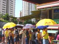 我们同时给有缘人讲真相。曾经有一群中国人在我们前方驻足,学员们不失时机的上前交谈,他们离开时都带走了真相资料和光盘。