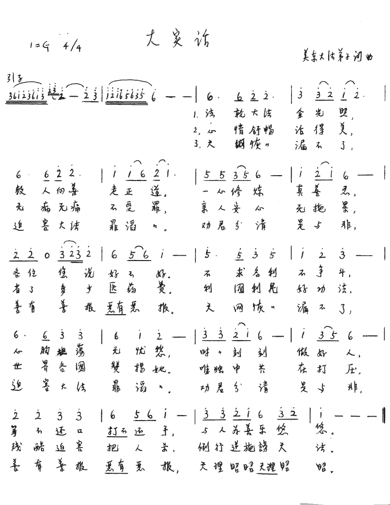 法轮大法金光照,教人向善走正道,一心修炼真善忍,各位您说好不好?