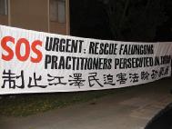 大法弟子在旧金山中领馆前连续整点发正念已进入第6天(图)