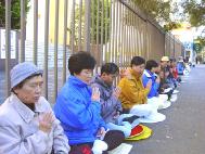 夜深了,人们已经睡熟了。这里,大法弟子们,在刺骨的寒风中,一个个顶天立地,坚如磐石。四十八个小时的连续静坐发正念除恶的计划,今天是第一个夜晚。