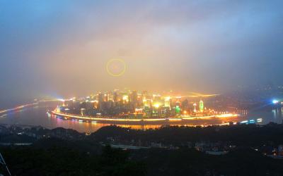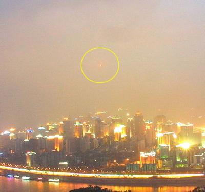 近日,全国各地许多媒体都不约而同报道了一个神秘的发光体掠过江苏,河南、陕西、四川、重庆等地的天空的消息,并且有大量的当地目击者以描述来证实了它的存在。就在上月底,重庆市民,天文专家以及驻渝空军都有多例发现神秘飞行物的报告。虽然也有许多人用灯光折射,大气现象,飞机,卫星,人造空间飞行器,火箭碎片等来加以解释,但就记者拍摄的这个发光体分析而言,即便是地面有灯光照射在了低空云层上,但也不太可能“聚焦”形成至如此高亮度的一个点,按道理光线在云层上一般来说会呈散射状。另外,渝中半岛上空没有航线,是禁飞区,也不太可能是人类飞行器。