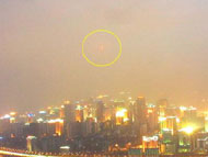 2002年7月3日晚,记者在南山一山头俯拍了一组渝中半岛灯火辉煌的夜景图片,当7月9日记者准备细看放大发稿时未料却在一张照片上惊讶地发现了一个悬浮于半空的神秘发光体,它就是近日频频见诸于全国各地报端的那个幽浮(UFO)吗?