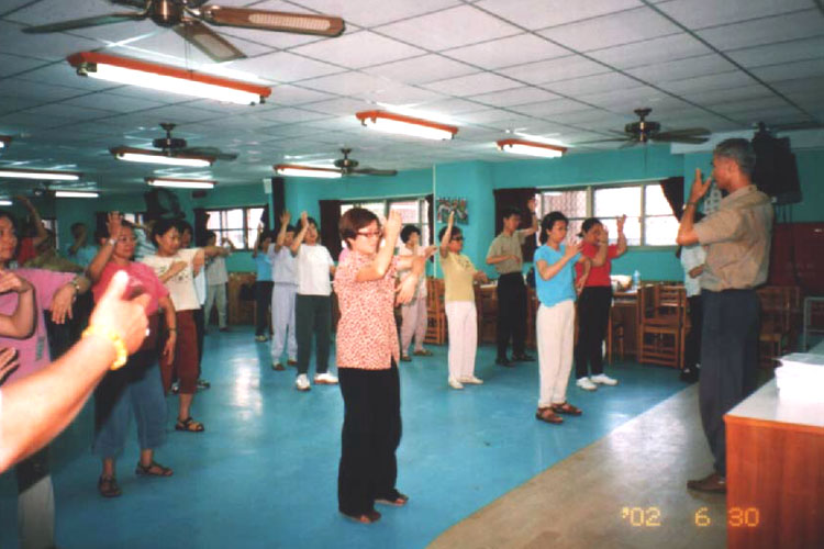 朱女士分享了她得法的经历。她是因为看到1999年4月25日法轮功学员去中南海附近的国务院信访办上访,体现出的公德心超越了她所想像的最好标准,带着万分好奇,踏入法轮大法修炼。在修炼过程中身体净化,心性转变。朱女士修炼第一天晚上,感觉到从头到脚能量流流动,小腹部位葡萄瘤被吸出一样,不正常出血停止,肿瘤不药而愈。朱女士的神奇经历令在场的老师们耳目一新,纷纷表示想修炼法轮大法。朱女士的演讲让前来研习的老师们对大法修炼有了初步的体认。下午看影片也起了很多回响,有些研习老师看了还不断拭泪,因而学习功法也更加卖力起劲了!