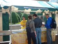 1. At about 8.50 am on the 14th of March 2002 4 Swiss Fa Lun Gong (F.L.G.) practitioners set up a small stationary linear sit-in type demonstration in front of the flag podium of the Chinese Government Liaison Office at 160 Connaught Road West (no.160). By Hong Kong Standards, this pavement was very wide totally unobstructed and pedestrian traffic was very light. The demonstration included a hand held banner, a mat stating "Switzerland" and (like all things Swiss!) was extremely neat a tidy. The demonstration was "aimed at" the government of China and its positioning was "symbolically perfect" (i.e. directly opposite the flag podium of the government to whom the protest was directed). The "layout" can be fixed exactly on the scale plan exhibited. There was over 2 metres of clear pavement in all sides of the demonstration area. (2-3 metres on the office(s) side and 5 to 6 metres on the road (N.) side). The demonstrators had no reason to believe that they would embarrass or inconvenience anybody or anything except the conscience of the government against whose activities they were seeking to exercise the H.K. right to demonstrate. Early video and photos of this demo (prior to about 10.00 am) show it to have been colourful but quiet and that tranquillity, peace, calm, and order prevailed. However there was a buzz of official resentment and activity at no.160.