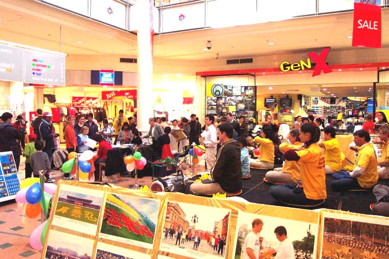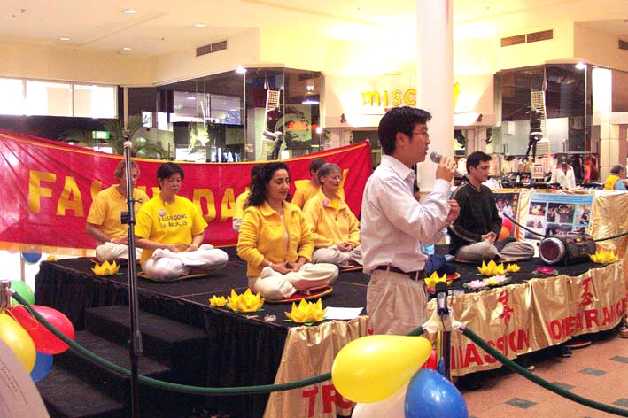 本次活动得到了市议会及多方面的大力支持,购物中心将正门内最大的一块场地提供给本次活动,并在场地中央搭起了一个临时展示台。正式活动从中午12点钟开始。首先,有十多名西人学员上台展示法轮功五套功法,与此同时,该市的市议会议员沃史进行了简短的演讲,他在演讲中提到:本市是一个多元文化最为集中的城市之一,法轮功是我们多元文化中的一个组成部分,他们积极参加一些社区活动,并长年坚持在周末义务教功,为人们的身心健康起到了积极的作用,我们非常赞赏法轮大法倡导的“真、善、忍”原则,他们所讲的与人为善也正是我们应大力提倡的。