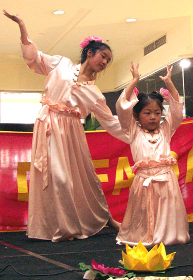 在随后的歌舞表演,功法演示等节目中,都吸引了大量的人们驻足观看,其中有三名法轮功西人学员上台讲述了他们修炼法轮功后的体会,他们真切感人的现身说法打动了在场的许多人。其中一位从土耳其南部移民到澳洲的青年教师吉森在她的发言中谈到:“我炼法轮功才只有8个月,在此之前我是一个调皮、任性的人,做事从不会考虑别人。我从18岁起就患有严重的心脏病,为此我四处求医,治疗了二十多年也没有好转,可自从我炼法轮功以后,还不到二个月,我的心脏病就明显地好转,为此我停止了用药和治疗,现在我的心脏病已经好了。与此同时,我身体中的其它疾病也都逐步消失,我还戒掉了吸烟的陋习,也许你不敢相信这是真的,但是我相信,因为这奇迹就发生在我身上。法轮功教我们真善忍,我也学会了真善忍,她使我有了幸福的生活,也使我成为了一名好教师,好妻子,好母亲,好朋友,和一名能关心他人,处处为别人着想的人。”