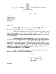 加拿大法轮大法协会在过去三年内收到加拿大各级政要几百封信件,呼吁中国(江泽民)停止迫害法轮功,支持言论和信仰自由。