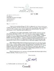 (信六、加拿大外交部部长John Manley先生2001年10月16日给加拿大法轮大法协会致信)