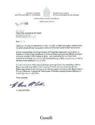 (信三、加拿大司法部部长Anne McLellan女士2000年7月21日给加拿大法轮大法协会的信件)