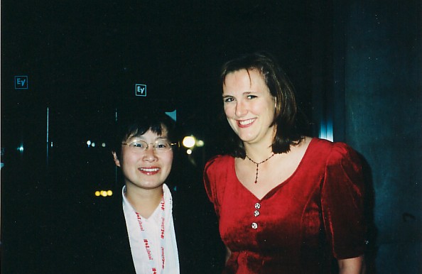 学员向加拿大总理Jean Chretien直接递交法轮功真相材料和呼吁信。(左为国际自由党主席兼比利时外贸部副部长Annemie Neyts-Uyttebroeck女士)学员向曾列亚洲50名最有影响力的人物:日本自由党领袖、和日本驻加拿大大使介绍法轮功。