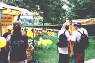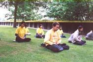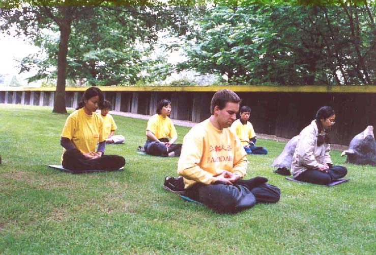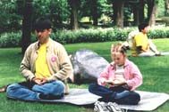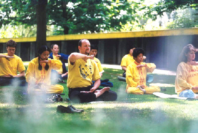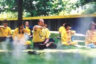 下午2点是法轮功义务教功时间。教功的西人学员耐心地接待每个来学功的游人。我们仅摄下几幅照片献给大家。