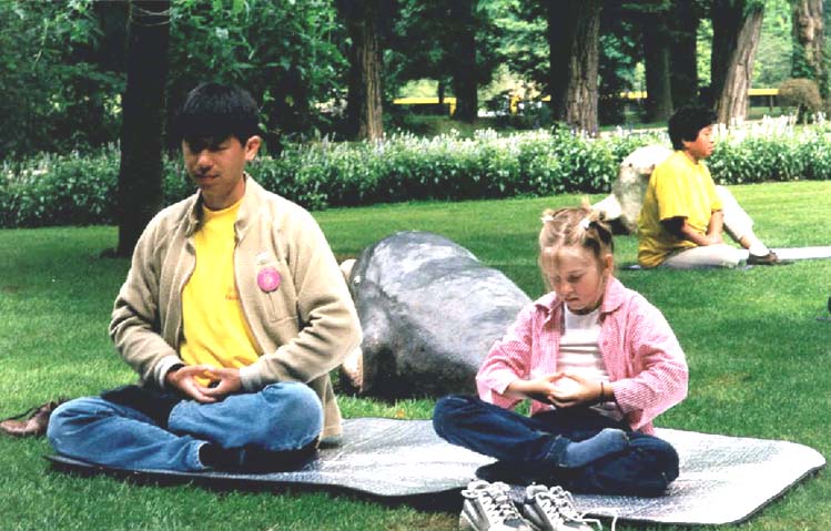 这个活泼爱动的小姑娘看完第五套功法表演后要和学员一起打坐,她想体会静功的感受。出乎她父母的意料之外,她做完一遍还想继续坐。