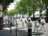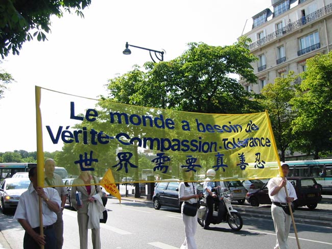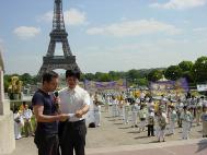 在中国,警察接到江泽民向法轮功学员开枪的命令,而在法国警察来保护法轮功学员的活动不受骚扰。多么大的反差!由于法轮功学员不会给警察带来麻烦,他们执勤时表现得很轻松。有的还向学员深入了解法轮功的真相。