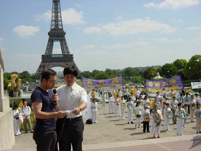 数家国际及法国媒体拍摄了游行的全过程,并对法轮功学员及其支持者进行了采访。学员们利用这个机会向他们揭露了自焚其实是江泽民一手策划的,因为他使用的手段极其卑劣,这也是他最害怕曝光的事情。