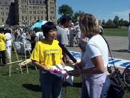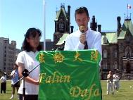 【明慧网2002年7月21日】2002年7月20日上午11点,来自加拿大东部多伦多、蒙特利尔、渥太华的部分学员聚集在首都渥太华,以“真善忍在残酷迫害中依然光彩夺目”为主题,回顾了三年来面对江泽民集团不断升级的残酷迫害、法轮功学员大善大忍的崇高境界。并发起营救15名加拿大亲属的运动。