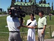 渥太华公民报记者采访多伦多学员张丽CJOH电视台采访林慎立学员向记者介绍“莲花”的喻意