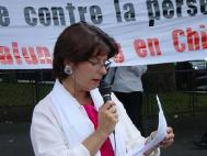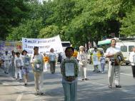 有一位越南老太太住在共和国广场的附近,游行队伍一出发她就听到了普度、济世的音乐,当时她觉得眼泪就要掉下来了,她立即跑下楼来看看怎么回事,当她了解情况后立即就说我跟你们一起走。于是她和游行队伍一起一直走到终点,期间并还帮助法轮功学员举横幅,最后表示要炼法轮功。还有一位法国人当了解真相以后立即就说“我能为你们做什么?”同样这位先生参加了我们的游行一直到结束,最后他说我是开旅馆的,把你们的传单给我吧,我要让住进旅馆的人都了解真相。这可真是佛度有缘人啊!