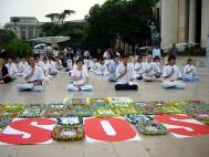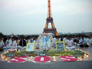 晚上法国大法弟子在人权广场为死难的同修举行了烛光守夜活动。
