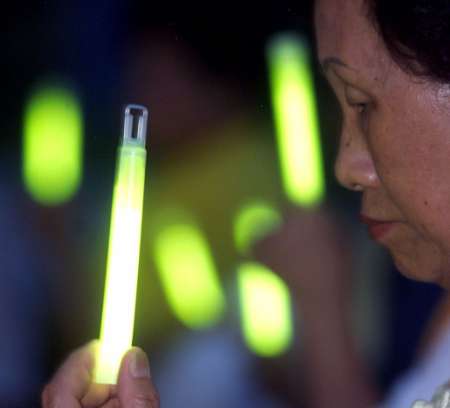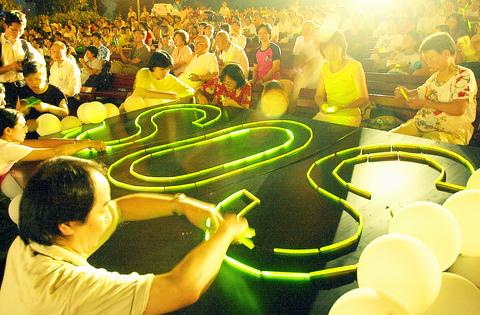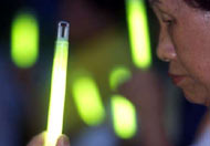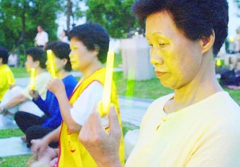 的法轮功学员,台湾法轮功学员7月20日晚在台北大安森林公园举行「720烛光纪念会与音乐会」抗议江泽民对法轮功学员惨无人道的迫害。(路透社图片)