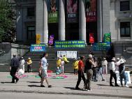 温哥华学员在市中心的艺术馆前广场举行了大型活动,呼吁国际社会共同起来阻止这一已经持续了三年的暴行,当地主要媒体到场进行了采访。