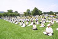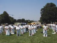 【明慧网2002年7月24日】2002年7月23日一大早,约一千名来自全世界各地的法轮功学员聚集在华盛顿DC中国大使馆附近集体炼功,这是华府学员为抗议法轮功在中国大陆遭到残酷镇压三周年而主办的系列活动的最后一天。
