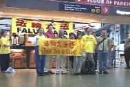 7月1日,大卫被遣返回美。在机场,大卫的父亲和西雅图的十几名学员前往迎接。大卫告诉了大家他在香港的经历,学员在法轮大法的横幅下合影引来旅客驻足观望。不少旅客拿到了真相材料。一些人听到大卫的香港之行介绍后,向大卫投来赞许的目光。