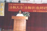 三点五十分,两天的研习课程已近尾声,透过这两天的研习,希望老师们能谈谈他们的心得。所以安排了四十分钟的交流座谈。有多位老师开始想了解转法轮的内容,我们除了告诉他们在各大书局都能购买此书之外,有的老师也请同修帮他们购买。